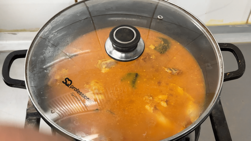 3.Tumis bumbu halus,masukan daun salam,sereh,kunyit,merica tumis sampai harum,masukan garam,gula,asem.tambahkan air.dan masukan ayam ungkep sampai empuk.test rasa