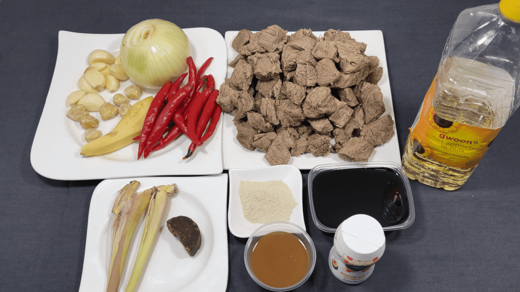 1.Siapkan bahan-bahan,rebus daging hinggai empuk kalau mau lebih cepat bisa di presto.dan haluskan bumbu halus
