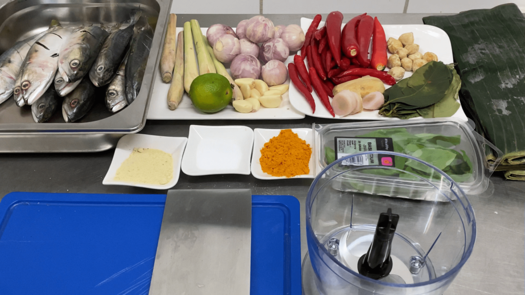 1.Siapkan bahan-bahan,haluskan semua bumbu halus,lumuri ikan dengan garam,diamkan sebentar test rasa