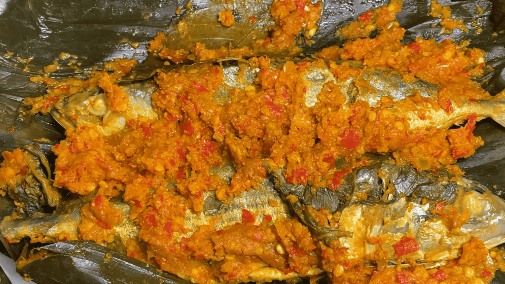 3.Kukus ikanya dengan panci kukusan,sampai ikan mateng,selanjutya,angkat dan bakar diatas teflon,