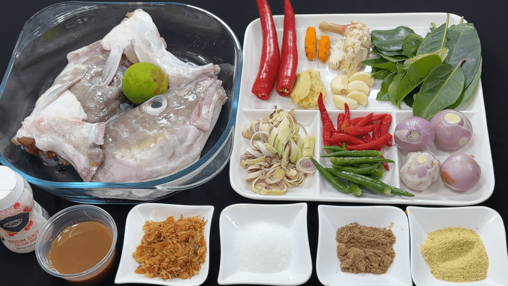 1.Siapkan bahan-bahan dan ikan,cuci bersih kepala ikan Lumuri dengan air perasan jeruk nipis dan 1 sdm garam hingga merata diamkan selama 10 menit lalu bilas kembali hingga bersih. Sisihkan.
